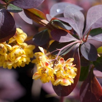 Листва: насыщенного винно-пурпурного цвета. Осенью ярко-красная.