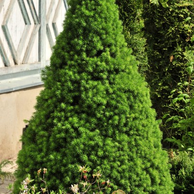 Форма: карликовое медленнорастущее хвойное дерево правильной конусовидной формы с густой кроной. Высота взрослого растения – 1,5-2,0 м., диаметр кроны – 1-2,0 м. Годовой прирост 5-8 см. первые 10 лет, затем 2-3 см. Шишки образуются редко.