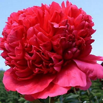 Очень крупный махровый бомбовидный цветок (диаметр до 20-23 см) ярко-красного цвета. Куст быстро нарастает, стебли прочные. Гранд-чемпион национальной выставки пионов США!