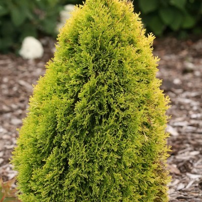 Хвоя: чешуйчатая, золотистая в течение всего сезона, на ярком солнце желто-оранжевая.