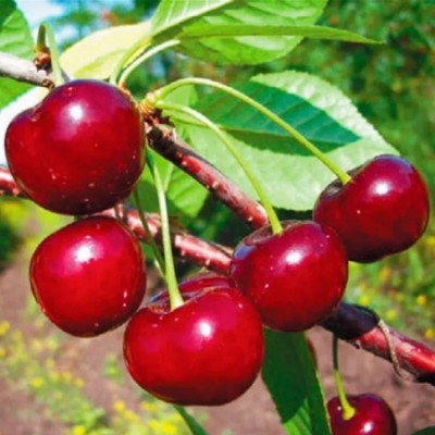 Плоды: крупные (масса 4,2 гр.), округлые, темно-красного цвета. Косточка легко отделяется от мякоти.