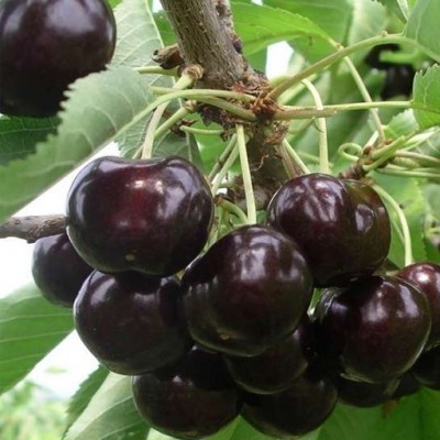 Плоды: средние (3,0 – 3,05 гр.), округлой формы. Кожица блестящая, по окрасу — темно-красная, при полном созревании почти черная. Отрыв плода сухой.