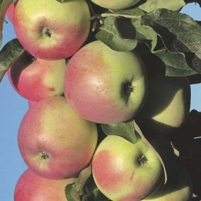 Плоды: средние (130-140 гр.), конической формы, основная окраска - светло-зеленая, покровная - размытый красный румянцем и полосы на большей части плода.