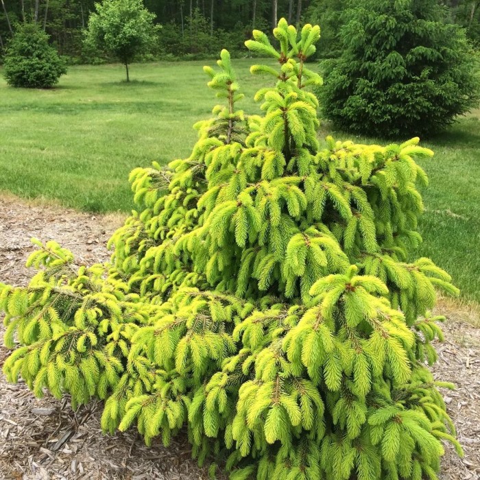 Форма: медленнорастущее дерево с нерегулярной широкопирамидальной кроной, высотой и диаметром до 2,0-3,0 м. Ветви приподнятые у основания и дугообразносвисающие на концах. Годовой прирост 10,0-12,0 см в высоту и 2,0-3,0 см в ширину.