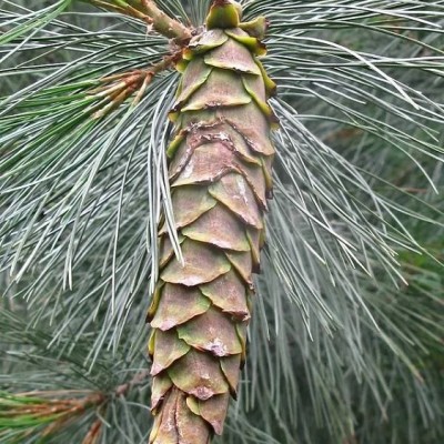 Хвоя: игольчатая, мягкая, тонкая, длиной до 10 см., серебристо-голубовато-зеленая, собрана в пучки по 5 шт.