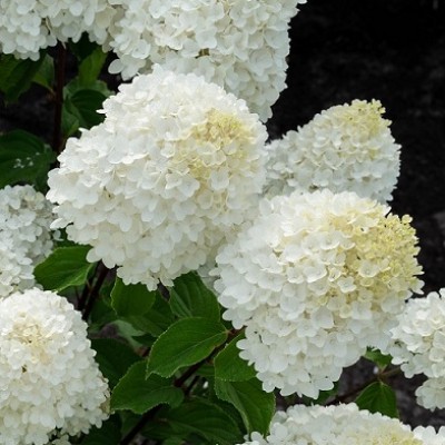 Цветение: конец июня – до заморозков. Плотные пирамидальные соцветия длиной до 40,0 см., цветки стерильные, крупные, белые весь сезон.