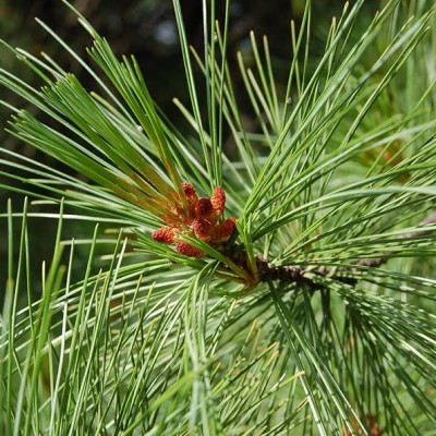 Хвоя: игольчатая, темно-зеленая, тонкая, мягкая, в пучках по 5 шт., шишки яйцевидной формы, прямостоячие, длиной 4-8 см.