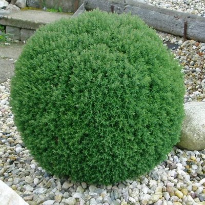 Форма: карликовый сорт диаметром до 0,5 м. с овальной плотной кроной. Растет медленно, годовой прирост 2-3,0 см.