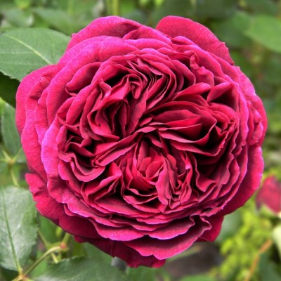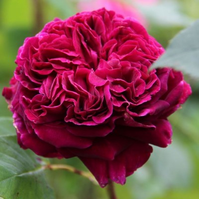 Цветок: темно-малиновый до пурпурно-фиолетового с перламутровым эффектом, лепестки закручиваются к центру, чашевидный до розетковидного, густомахровый, 90 - 105 лепестков в одном цветке, диаметр цветка 9 - 11 см, обладает очень насыщенным ароматом старой розы.