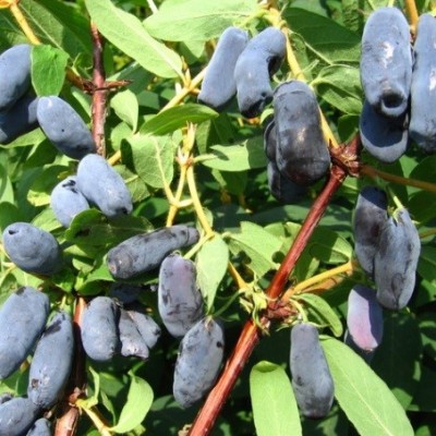 Плоды: крупные до 1,6 гр., форма плода вытянутая, темно-синего, почти черного цвета с легким сизым налетом. Не осыпаются.